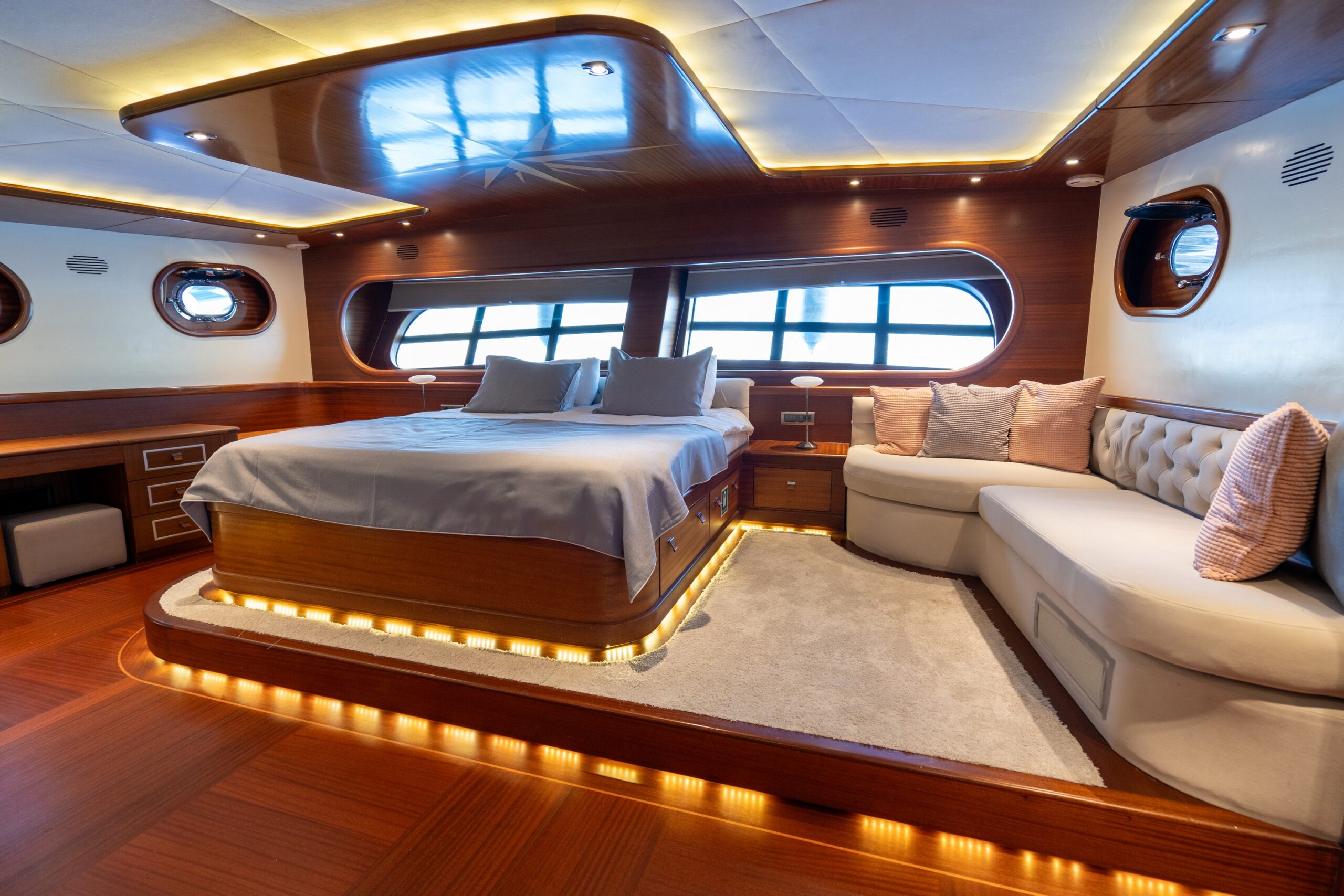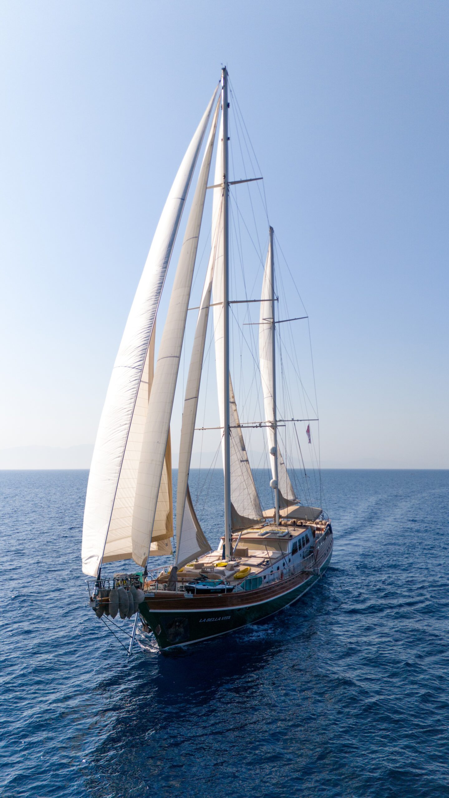 La Bella Vita was born in 2008, then quietly reinvented in 2023 — not to chase trends, but to honour what it had always been. At 47 metres, she carries twelve guests across six cabins with the ease of a vessel that has learned not to hurry. The refit brought new eyes to old bones: sharper interiors, considered details, a freshness that wears its history lightly.