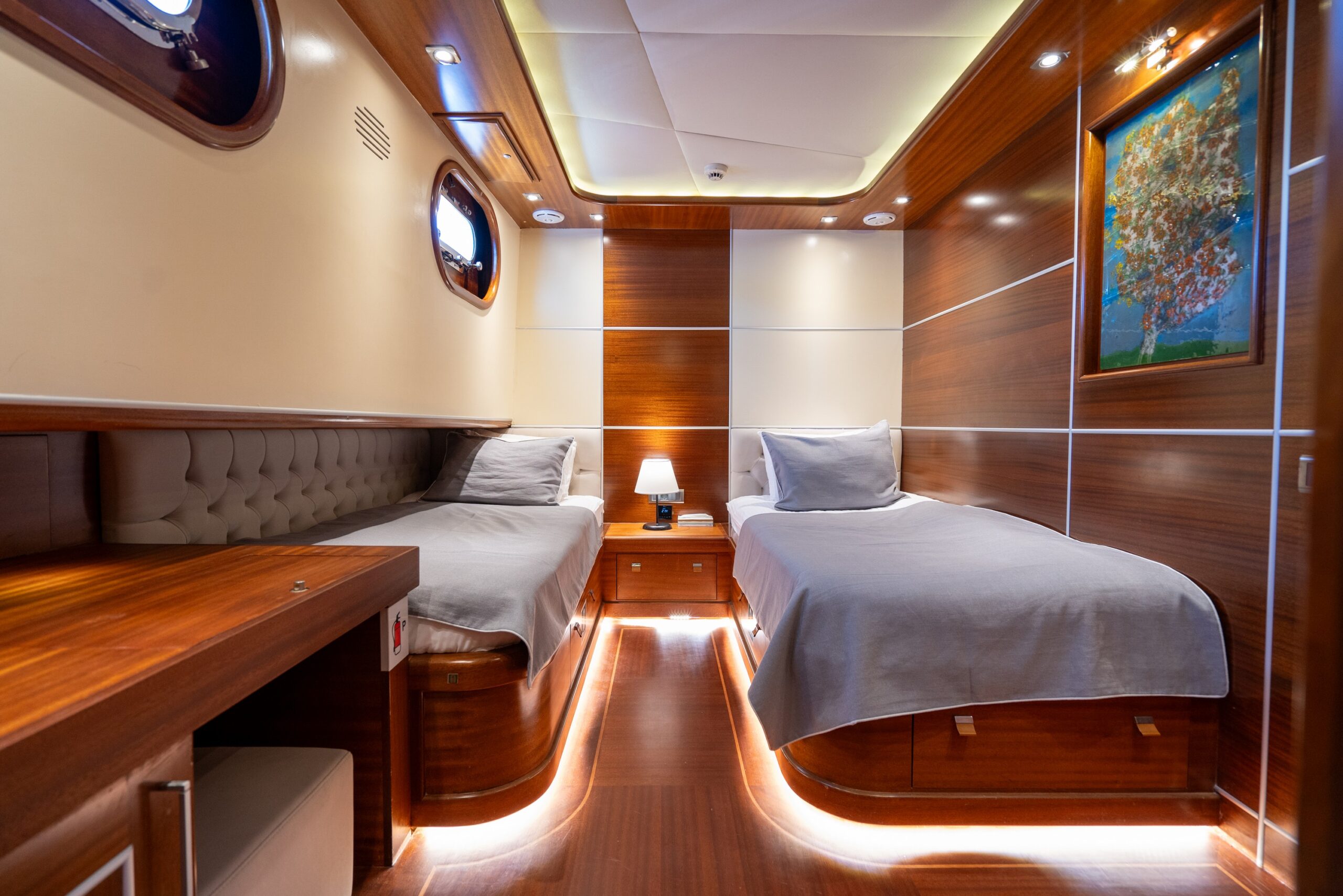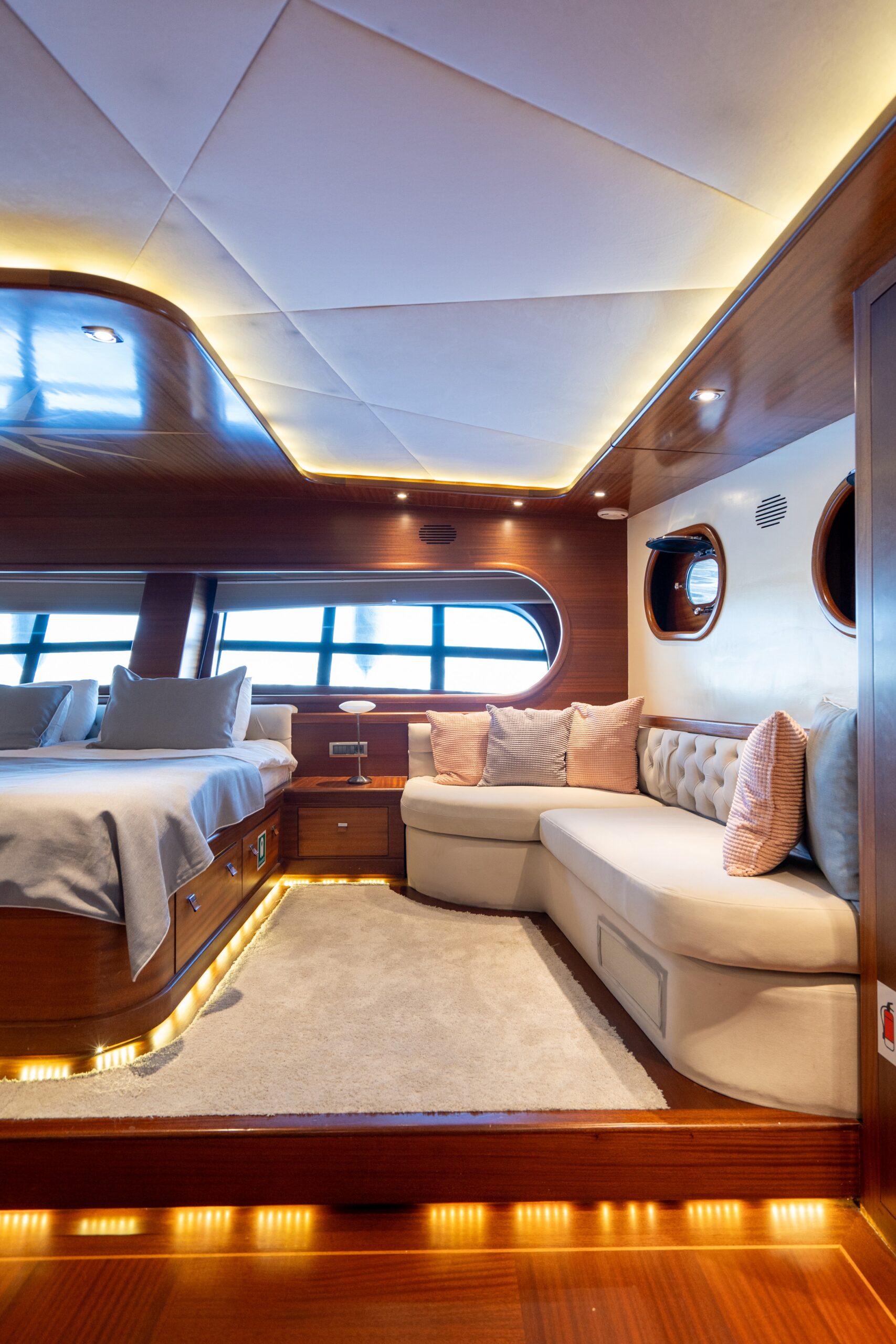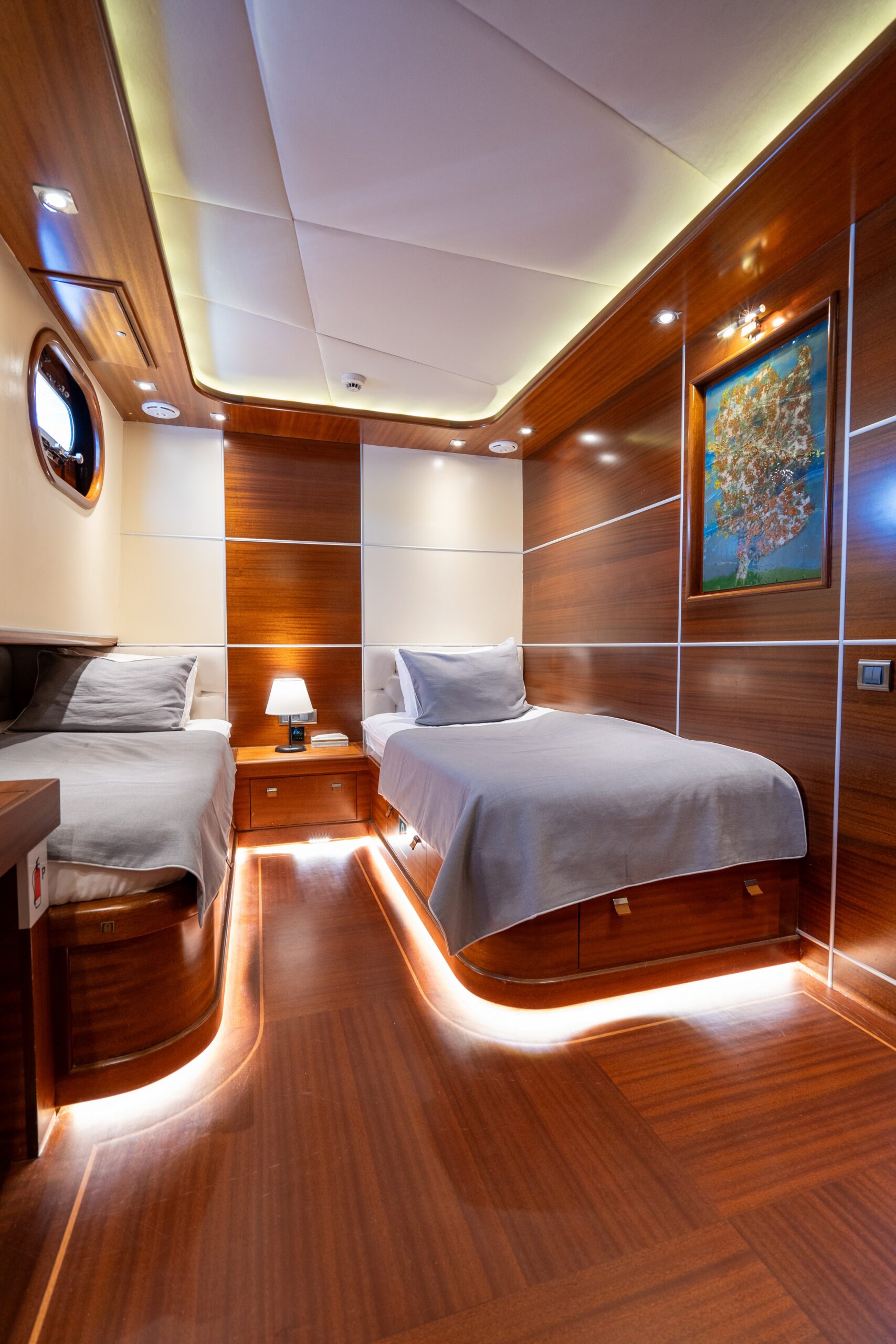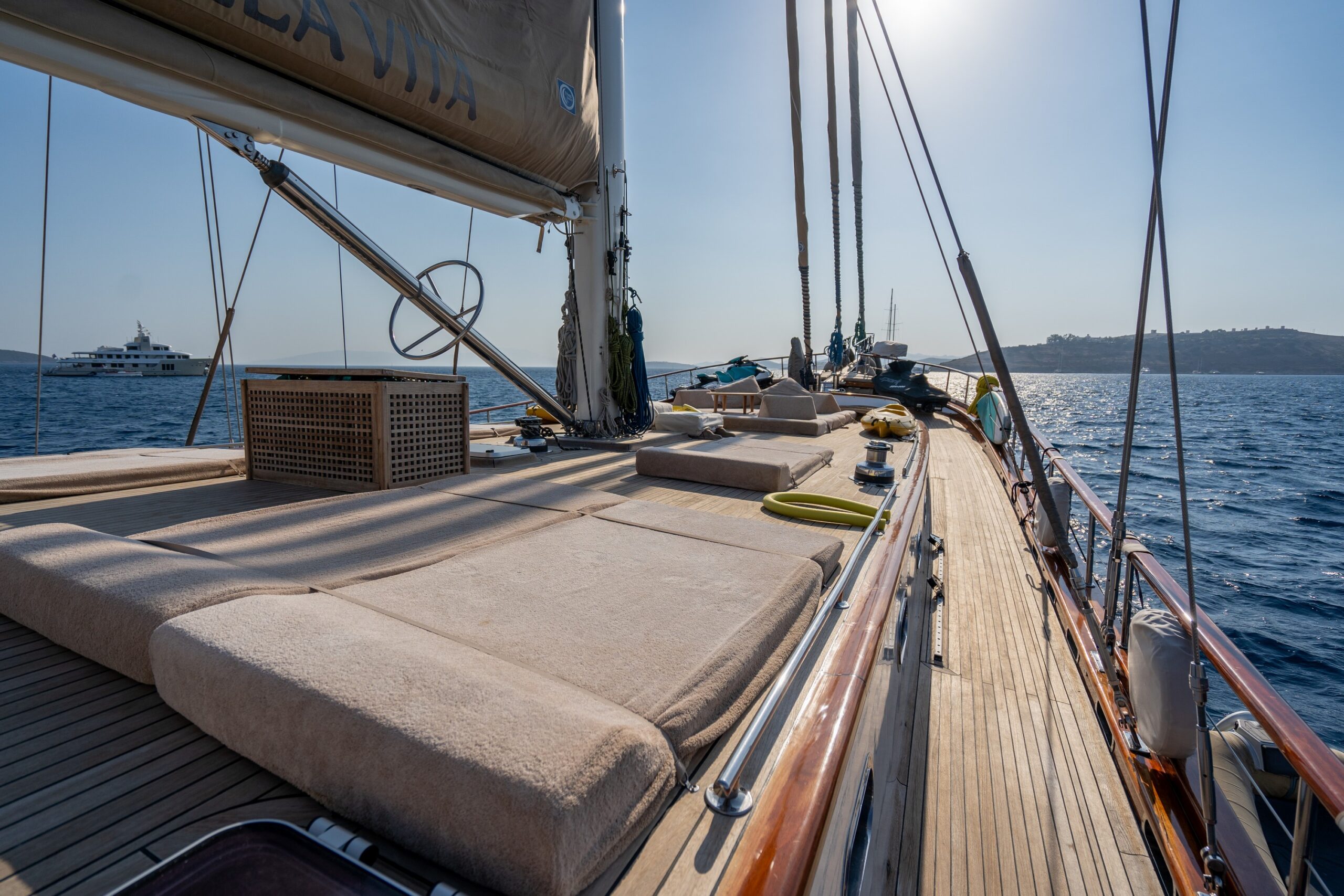 On deck, the sunpads face the right direction. Below, the four double cabins understand the difference between comfort and luxury. It is a small distinction. La Bella Vita gets it right.